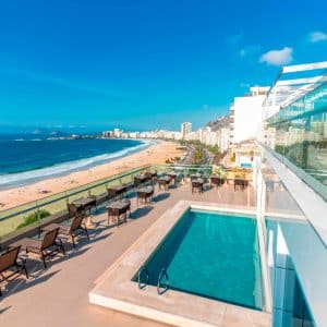 Situado directamente frente a la mítica Avenida Atlántica, este hotel destaca por su estilo contemporáneo y una de las mejores ubicaciones de Río de Janeiro. Con una arquitectura moderna y vistas frontales al Océano Atlántico, es la elección ideal para quienes buscan lujo, comodidad y el sonido de las olas al despertar.
